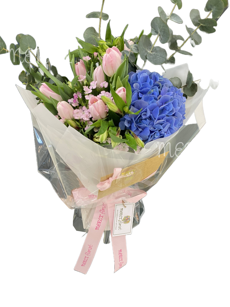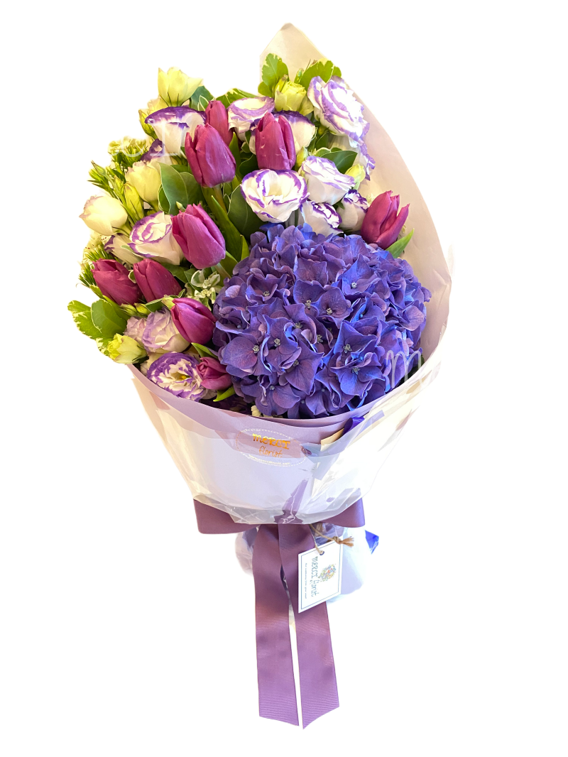| | KBQ0160 Pink Tulip and Blue Hydrangea Round Bouquet 粉紅色鬱金香及藍色繡球圓形花束 | | KBQ0168 Purple Tulip and Purple Hydrangea Long Bouquet 紫色鬱金香及紫色繡球長形花束 | |
