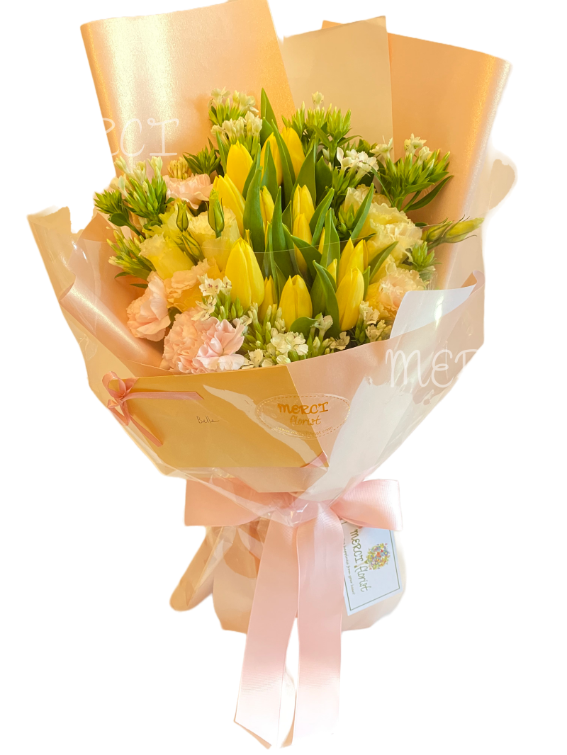 | | KBQ0179 Orange Tulip with small flowers Long Bouquet 橙色鬱金香小花仔長形花束 | | KBQ0177 Yellow Tulip Long Bouquet 黃色鬱金香長形花束 | |