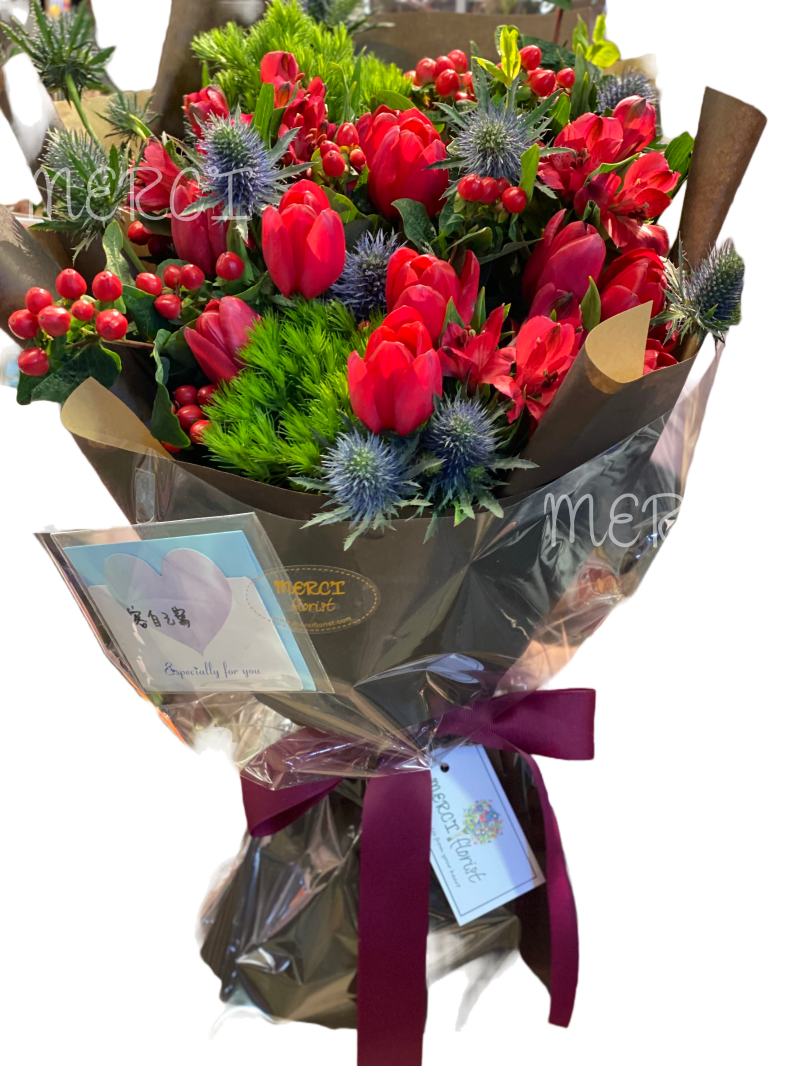 | | KBQ0164 Purple Tulip and Purple Clematis Long Bouquet 紫色鬱金香及鐵線蓮長形花束 | | KBQ605 Red Tulip Long Bouquet 紅色鬱金香長形花束 | |